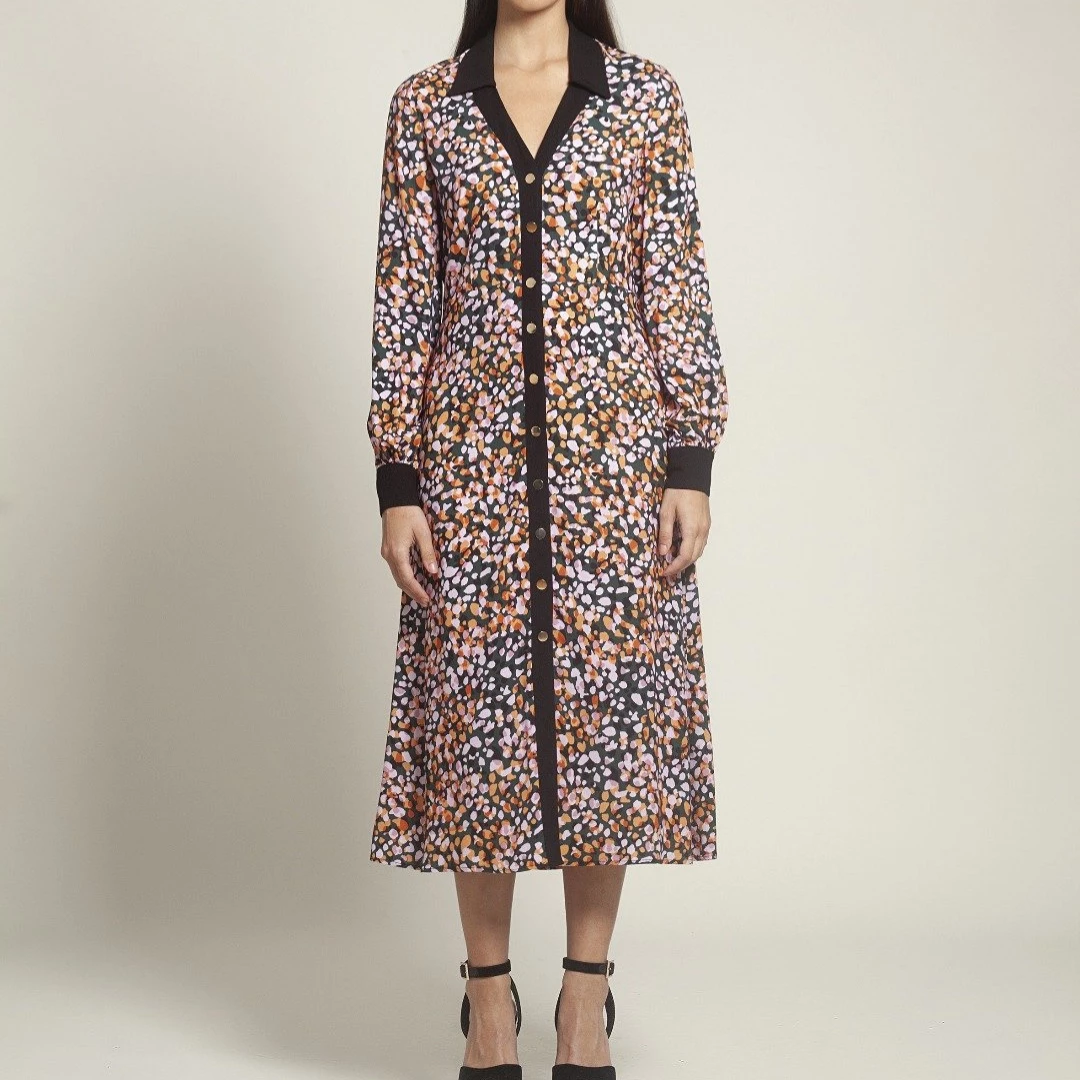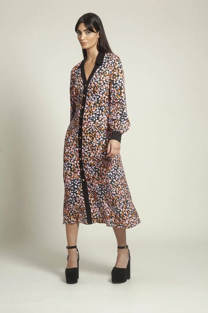 - Voluminous dropping sleeves with buttoned chunky cuff