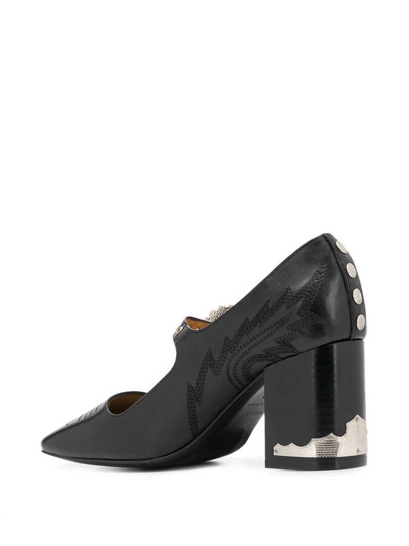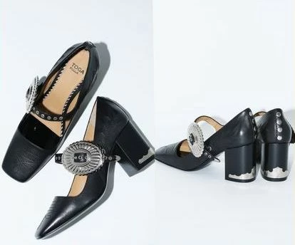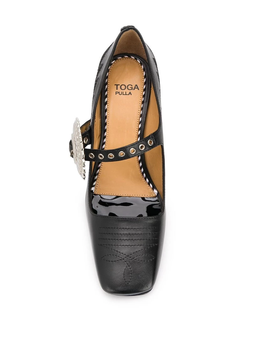 Style: AJ1013 Black Leather Pump with oversized buckle