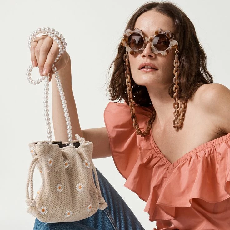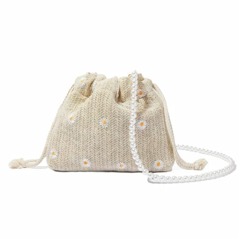 - Natural Daisy Print + Pearl Strap