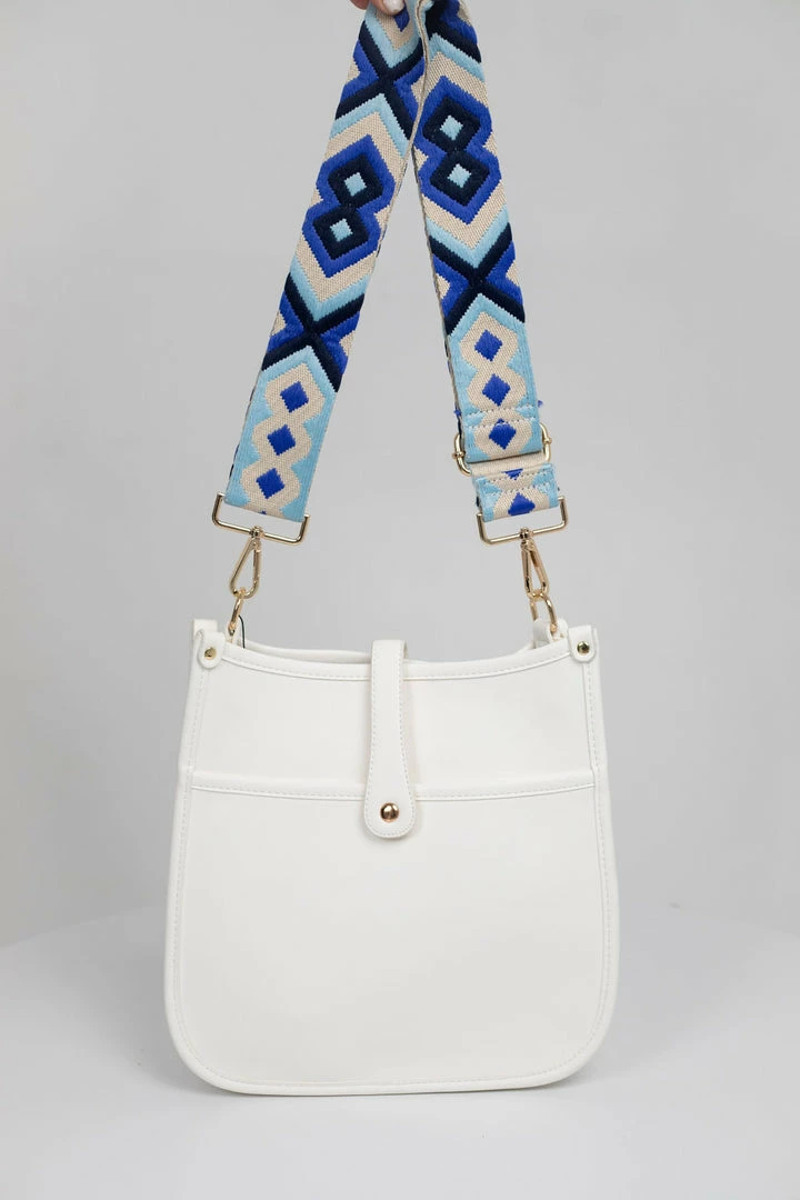 Style: Vegan Leather Crossbody with Baby Blue Tribal Strap