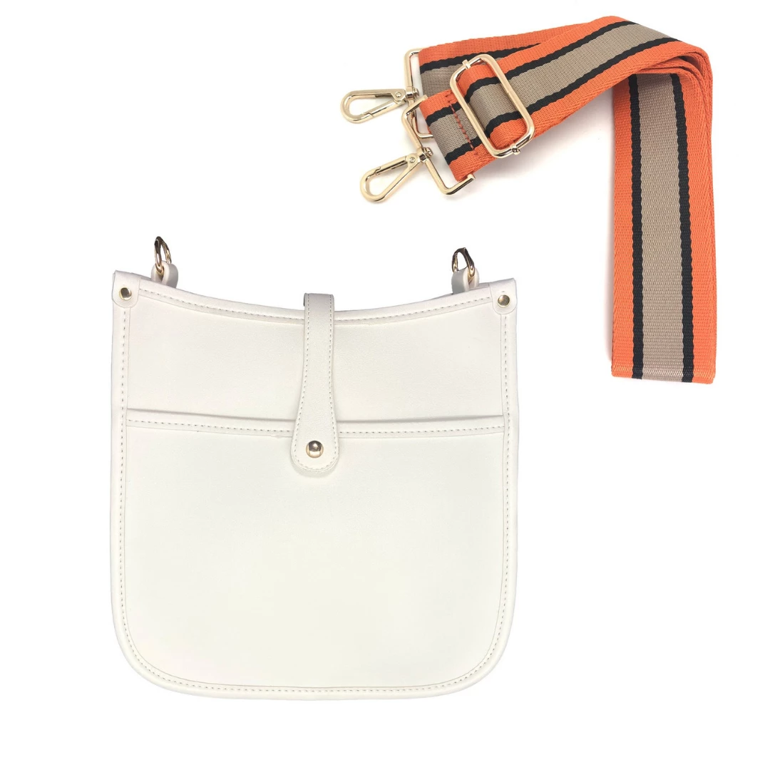 Style: Vegan Leather Crossbody with Orange Stripe Strap